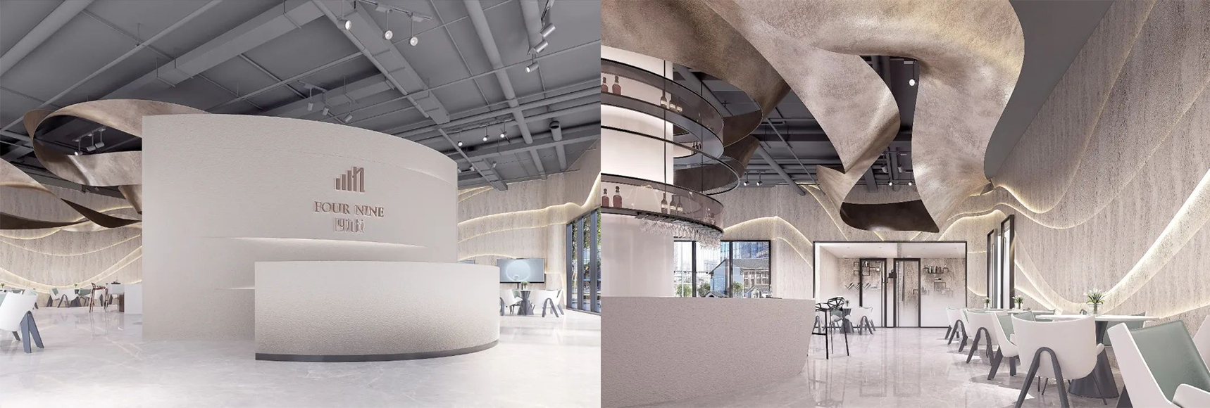整體界面會將不同的材質(zhì)、潔面抽象為基本的造型元素,通過造型要素的綜合運(yùn)用(點(diǎn)、線、面)的變化和對比,形成簡練而豐富的空間內(nèi)容。