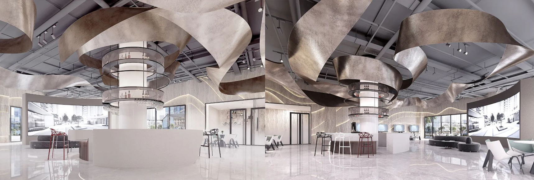 運(yùn)用現(xiàn)代、簡約的設(shè)計語言,體現(xiàn)了建筑空間的時代特質(zhì),采用中心空間序列的手法,減弱現(xiàn)有空間單調(diào)、呆板的感覺,增強(qiáng)過度空間的表現(xiàn)性。